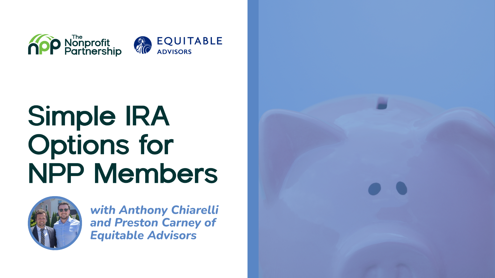In addition to the member-only MEAP 401(k) program we recently unveiled, The Nonprofit Partnership is spotlighting a Simple IRA option in collaboration with Equitable Advisors. This benefit provides small nonprofits with an accessible, cost-effective way to support staff financial wellness — whether your organization is exploring retirement plans for the first time or looking for a streamlined alternative.
