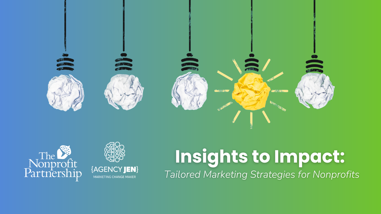 Join The Nonprofit Partnership and Jenny Marofsky-Poff of Agency Jen for Insights to Impact: Tailored Marketing Strategies for Nonprofits on Wednesday, November 15, 2023 from 9:00 AM to 1:00 PM.