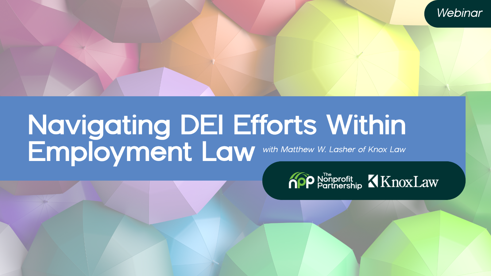 Join us for a timely session exploring the latest guidance from the Equal Employment Opportunity Commission (EEOC) and Department of Justice (DOJ) on how diversity, equity, and inclusion (DEI) practices intersect with federal anti-discrimination laws. This webinar will break down what nonprofit leaders need to know to ensure their DEI initiatives are both impactful and legally compliant. Hosted by Knox Law and presented by Matthew W. Lasher, this session is designed for nonprofit professionals looking to strengthen their DEI efforts with clarity and confidence.